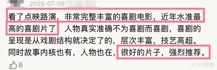 很多人笑着笑着就哭了,契合了陈佩斯一直强调的“一切喜剧都有一个悲情内核”,电影《戏台》不仅让观众笑,还回味悠长,被观众评价为“高级的喜剧”。