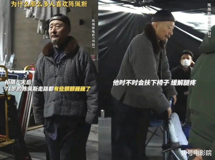 谁能想到,拍电影《戏台》时已经七旬高龄的陈佩斯,在片场累到走路都有些颤颤巍巍了,黄渤看到赶紧上前搀扶。