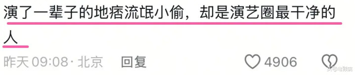 “演了一辈子的地痞,流氓,小偷,却是演艺圈最干净的人。”
