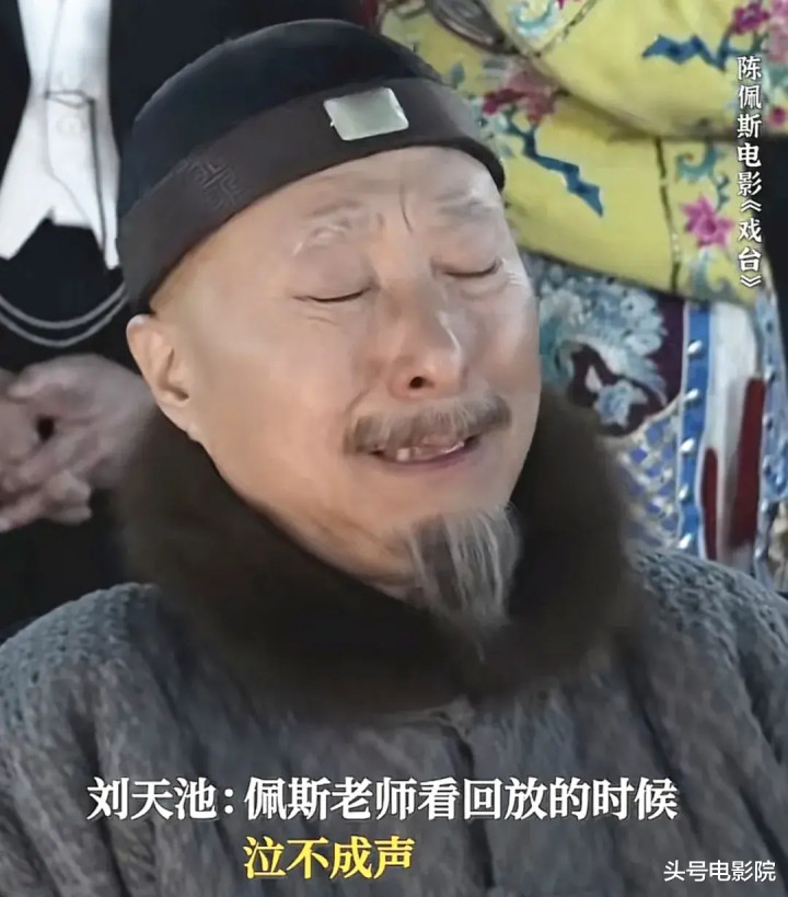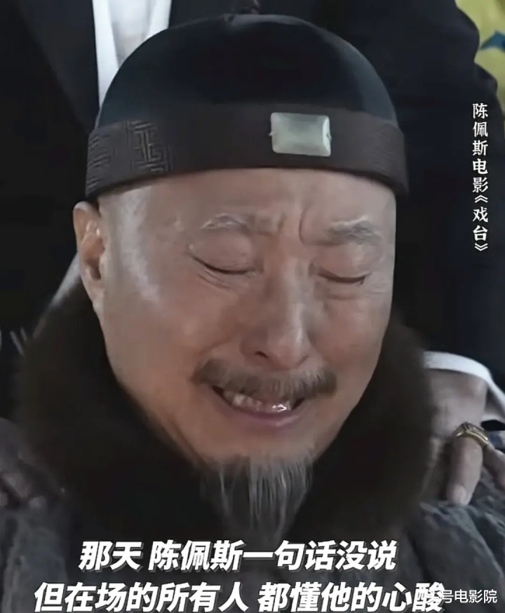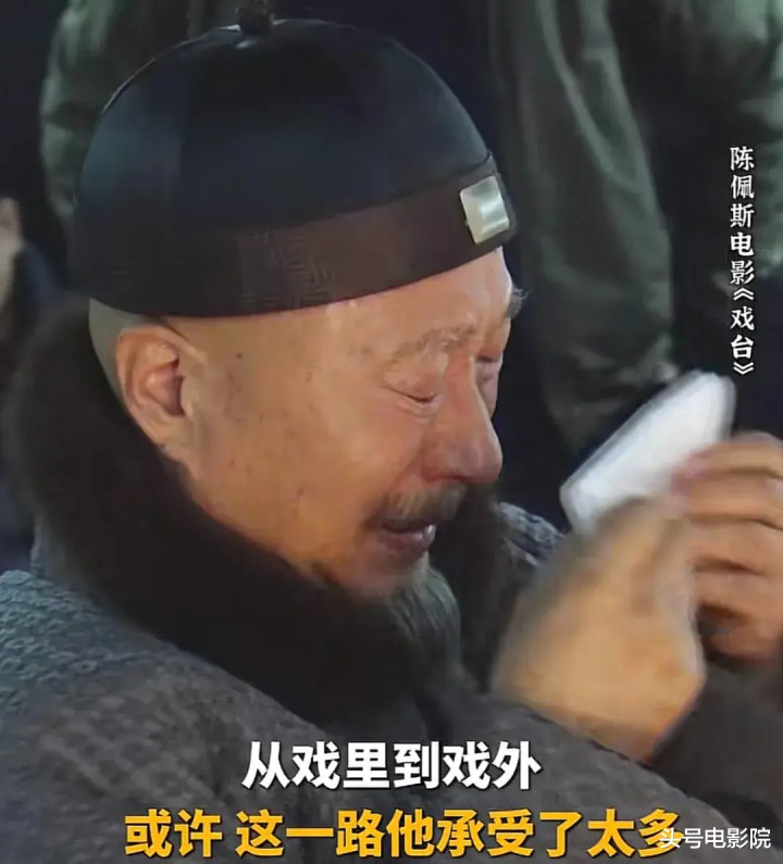 在《戏台》片场的幕后花絮里,陈佩斯在拍戏间隙的片场,突然哭了。